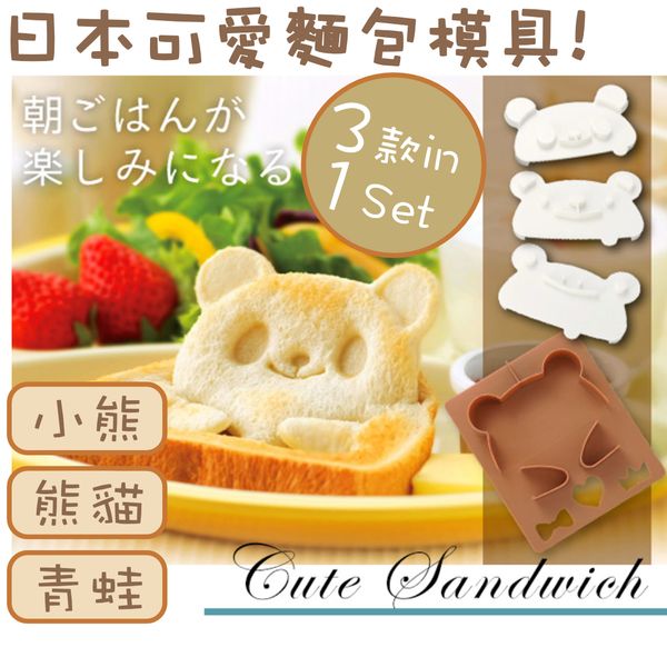 日本可愛麵包模具 愛心三文治多士卡通立體動物模具 日式兒童早餐熊貓小熊青蛙三明治切割模具製作器 DIY吐司壓模烘焙工具*產品不包含食物,敬請留意。