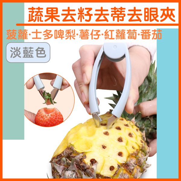 蔬果去籽去蒂去眼夾 草莓菠蘿薯仔紅蘿蔔蕃茄士多啤梨輔助切除處理器 廚房水果蔬菜鑷子夾子(淡藍色)