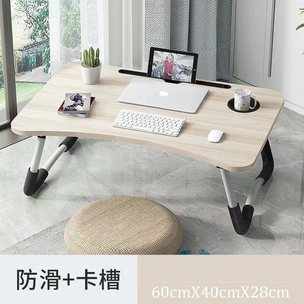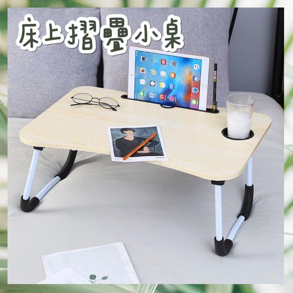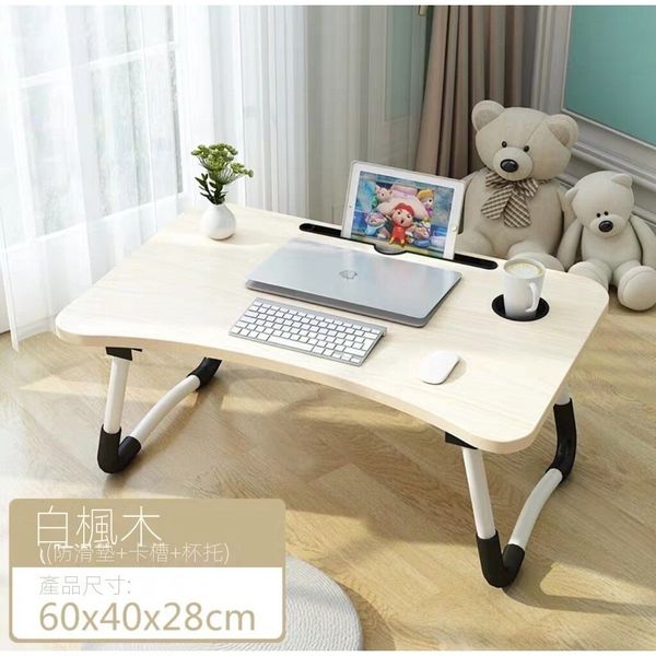 床上折疊小桌子 懶人桌 多功能學生學習吃飯書桌 筆記本可折疊電腦桌 寫字檯書桌 小型懶人桌 床上小桌子 書桌(白楓色/杯托+防滑)