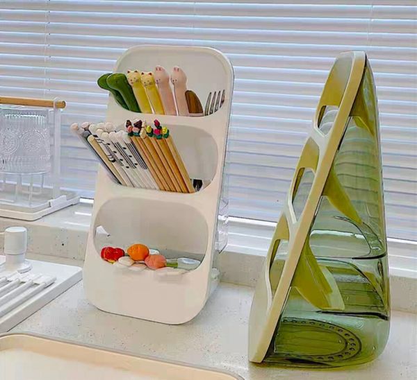 刀架置物架置地式塑料筷子籠刀具收納架瀝水筷籠菜刀架子 三層白色 廚房掛架 置物架