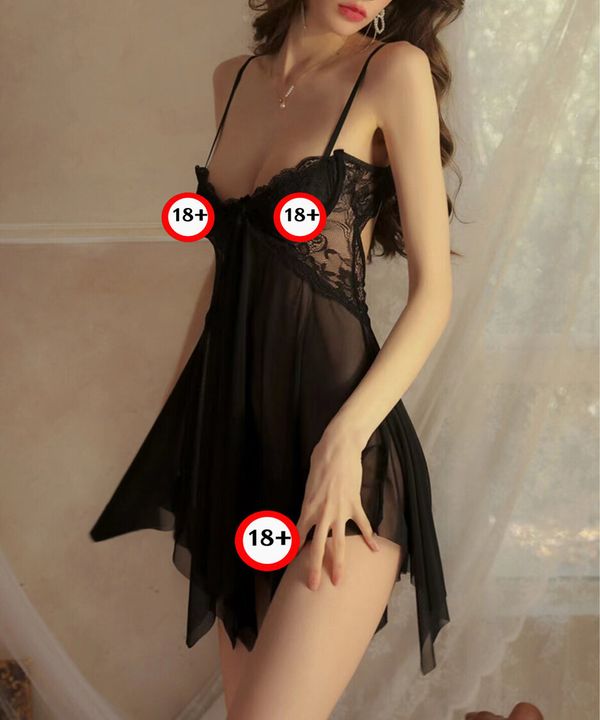 情趣内衣 火辣內衣 成人內衣 性感內衣 內衣誘惑 吊帶裙+T褲(黑色)