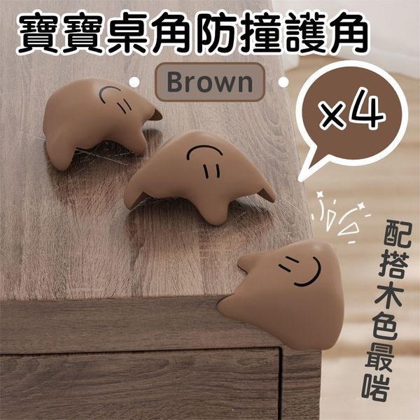 寶寶桌角防撞護角 加厚防磕碰家具轉角 兒童小朋友嬰兒BB安全護邊保護套抽 卡通矽膠包角防撞貼(4 個;啡色)