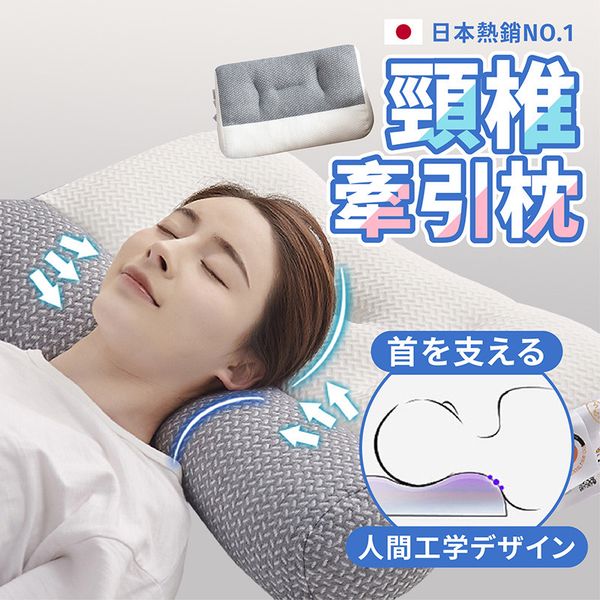 日式護頸椎牽引枕 日本大豆纖維枕 頸枕 枕頭 記憶枕 頸椎枕 按摩枕 頸椎按摩枕 止痛 治療頸痛 防失眠 日式枕頭 日式頸枕 日式記憶枕 護頸反牽引頸椎修復枕(灰色/40X60cm)