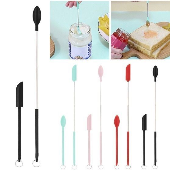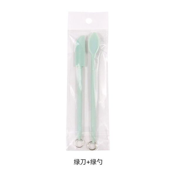 [2件套裝] 粉綠色 化妝品矽膠刮勺 迷你可伸 橡膠抹刀