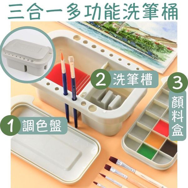 【學畫畫必備】三合一多功能洗筆桶:調色盤+洗筆槽+顏料分格盤|小朋友兒童學生美術廣告彩水彩塑膠彩油畫多種顏料適用藝術專業工具|可晾筆洗筆插筆調色手提外出寫生用