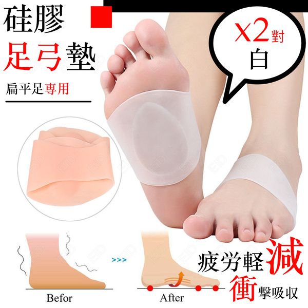 【扁平足旅行必備】硅膠拱形足弓墊 支撐身體重量 吸收衝擊 緩解疲勞 矽膠扁平足矯正鞋墊 足心套繃帶 腳心支撐墊 男女久站久行步行 預防足底筋膜炎足弓襪墊(白色;均碼)