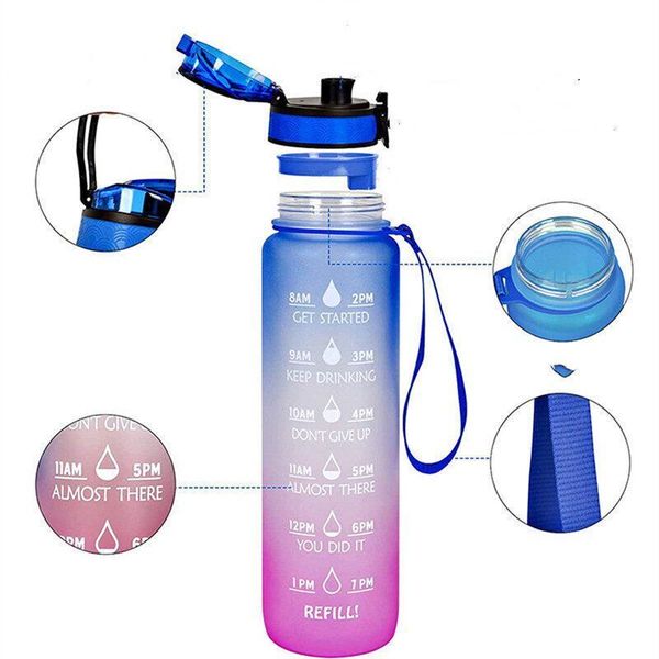 藍粉 1L 塑膠水壺 tritan水壺 磨砂漸變水杯 運動水壺 太空杯 旅行杯 水壺 水樽