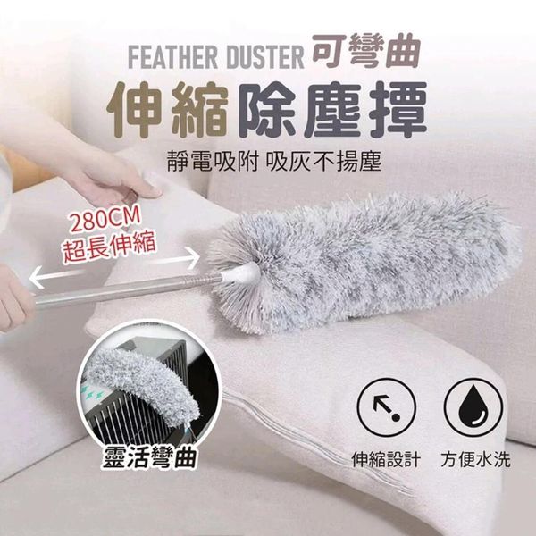 伸縮除塵撢280CM 灰塵撢 靜電除塵 可彎曲除塵撢 雞毛撢子 雞毛掃