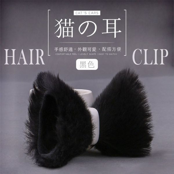 日系手作貓耳髮卡|毛絨仿真獸耳貓咪狐狸髮箍 男女通用 可愛萬聖節/聖誕節/Cosplay/Lolita/變裝舞會派對 黑貓頭飾髮夾發卡飾品(黑色)