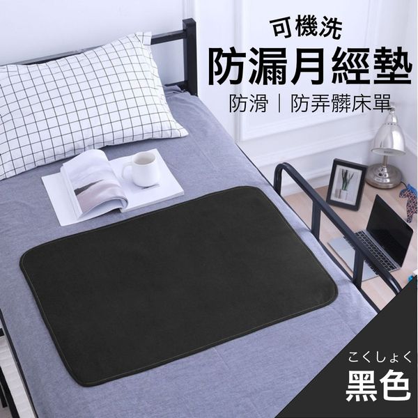 可機洗 防漏月經床墊(黑色)防滑不移位 安心熟睡 深色經期大姨媽墊 蘆薈棉透氣吸水隔水防側漏 可水洗女生睡覺深色生理期M墊(70x50cm)