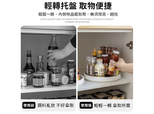 慳位360°旋轉置物盤|取物便捷 防滑膠墊設計 防物品旋轉打滑 廚房掛架 置物架|調味料/油鹽醬醋托盤/生果水果盤 整理收納架|可旋轉生果水果盤|廁所浴室洗手間沐浴露/護髮素/洗頭水/洗漱用品收納架