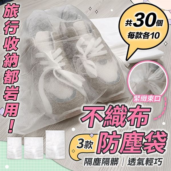 【旅行/收納用】加厚不織布防塵袋(共30個;每款各10)旅行分類束口收納袋 髒衣袋 拖鞋鞋子套|兒童小朋友毛公仔娃娃隔塵袋|曬鞋防黃袋 晾鞋罩 鞋子收納袋 洗鞋袋 包包袋子衣物收納用品 普通收納袋
