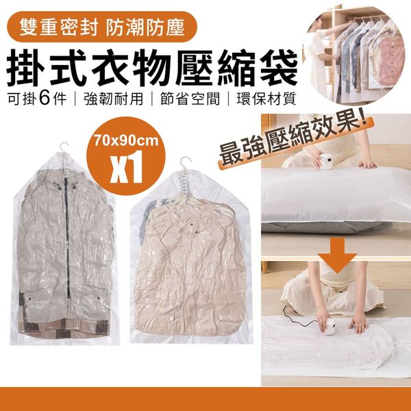 【一掛六】掛式真空衣物壓縮袋|防起皺 垂直懸掛 防潮防塵 雙重密封 升級壓縮效果|衣櫃西裝羽絨可壓縮收納袋|大容量換季收納神器 家用壓縮袋 厚衫毛衣冷衫外套壓縮包 棉被收納袋 搬家搬屋整理袋 裝衣服衣物蓬鬆拉鍊袋子|旅行便攜行李箱衣服整理專用袋子|出差衣物整理衣架(70x90cm)