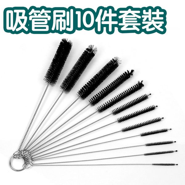 吸管刷10件套裝不銹鋼玻璃清潔刷奶瓶毛刷試管刷子杯刷 黑色