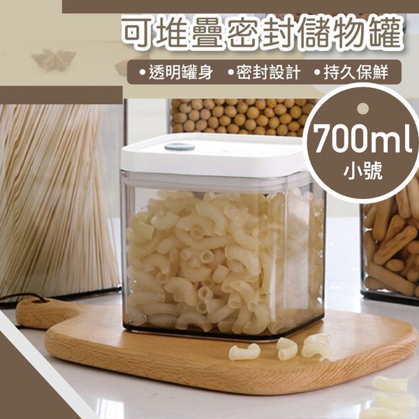 【密封防潮】日式可堆疊食品儲物罐|食品級粉末乾貨保鮮儲存罐子|耐冷耐熱 雪櫃冰箱側門零食乾果 麵條意粉通粉 咖啡粉 紅豆綠豆收納盒 食物儲存容器 透明保鮮盒(小號;700ml)