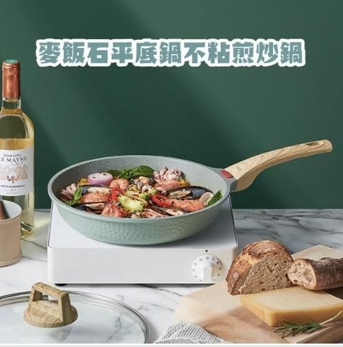 【**包裝隨機**】24cm 麥飯石平底鍋平底鑊不粘鍋煎炒鍋(電磁爐通用) 【煎牛排|炒菜|加厚材質】