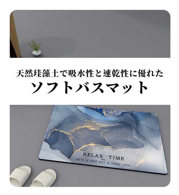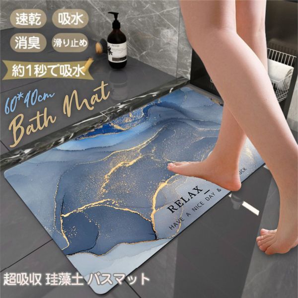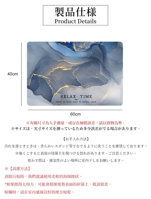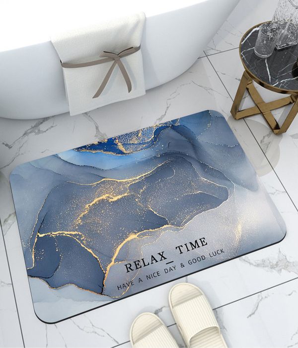 日式天然矽藻泥吸水地墊|吸水速乾 防滑防臭 三層構造 容易清洗 乾爽浴室墊|北歐輕奢衛浴 防滑浴室地墊 廁所洗手間門口速乾腳墊|大理石花紋地毯(60*40cm)