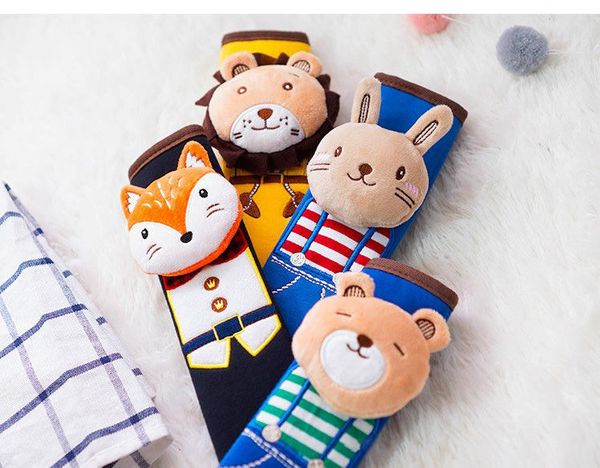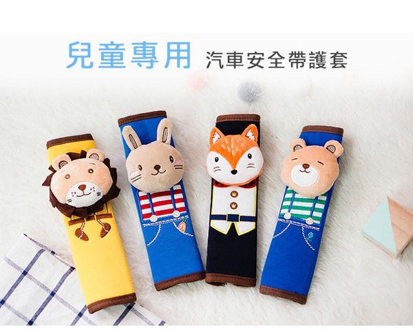 舒適好眠 兒童汽車安全帶護套|配戴舒適柔軟安全帶肩套|兒童座椅/嬰兒BB推車/汽車安全帶可用 卡通可愛小朋友固定帶魔術貼保護套(兔子款)