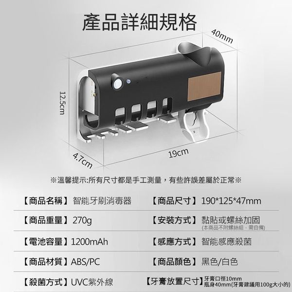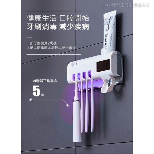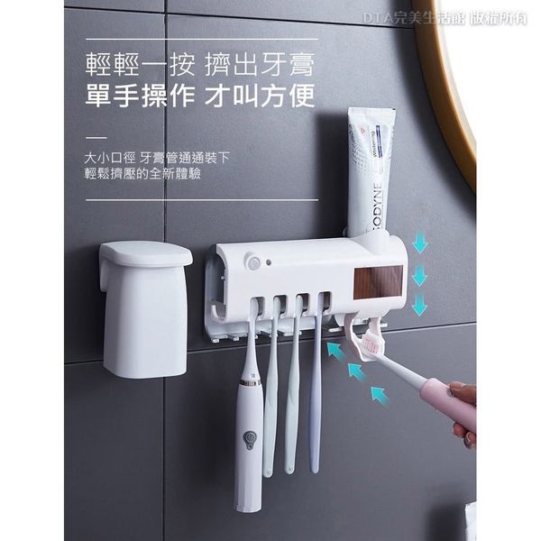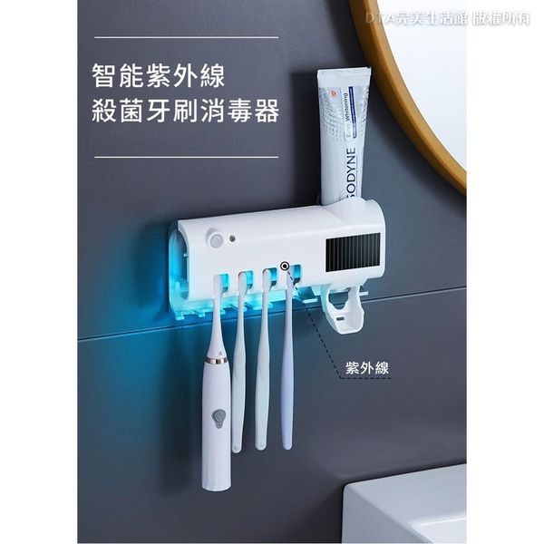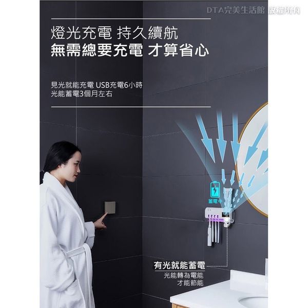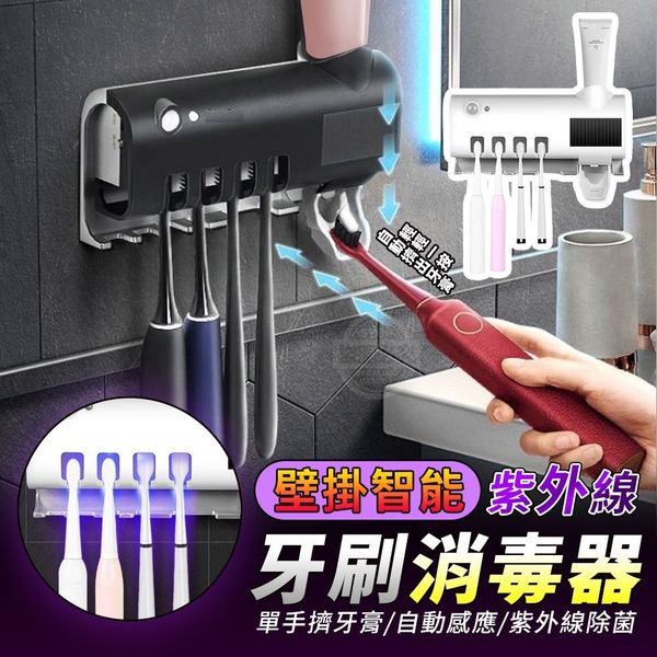 智能牙刷殺菌架 自動擠牙膏器 牙刷消毒器 牙刷架 紫外線殺菌 光觸媒消毒牙刷架 紫外線牙消毒物(黑色/自動感應款)