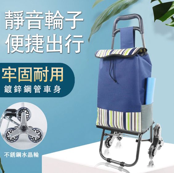 深藍條紋 可摺疊三角式可爬梯防水購物手拉車 可折式牛津布袋 購物車 買餸車 輕便防水手拉車 環保袋 野餐車 工具車 車尾箱備用手拉