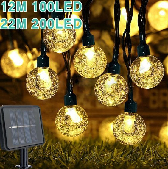 100燈 12米 暖白 太陽能燈串 氣泡球LED戶外水晶球 彩燈 聖誕燈 花園庭院裝飾串燈