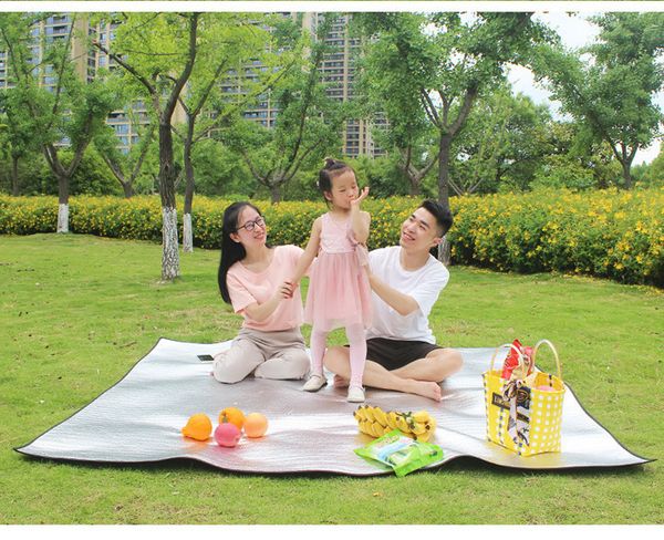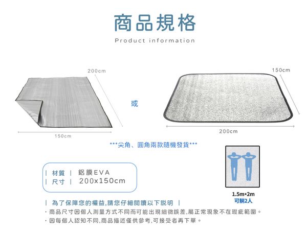 【防水易擦】戶外鋁箔防潮野餐墊|草地防潮 雙面鋁膜公園野餐墊|可折疊便利 耐高溫 保暖 汽車用防曝曬遮陽隔熱板 太陽擋|多用途露營帳篷防水防潮墊(200x150cm;圓角/尖角 隨機款式)