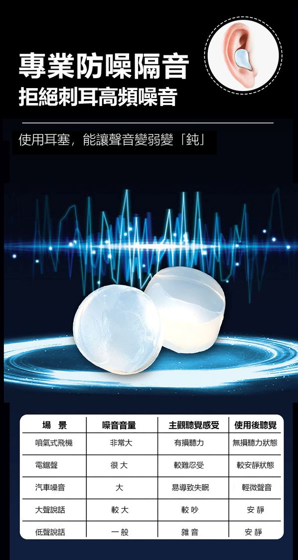 ✔非發泡式耳塞,不必直接塞入耳道也可阻絕噪音。