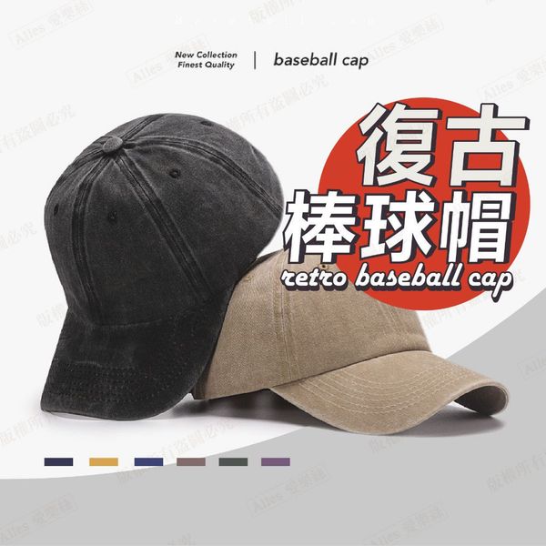 棒球帽子 鴨舌帽 棒球帽 水洗帽子 女生帽子 復古老帽 男女嘻哈帽 帽子 重磅 顯瘦臉小古風男士水洗棉鴨舌帽(卡其色)