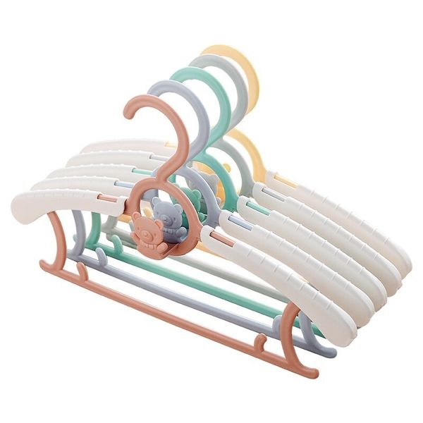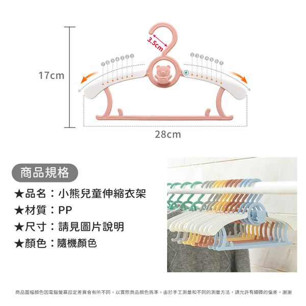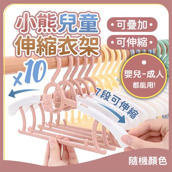 【嬰兒至成人皆可用】可伸縮小熊衣架|七檔長度調節 防滑設計 可疊加懸掛|衣櫃衣物/衣服收納掛架|全家/成年人/大人/兒童/小朋友/BB/寶寶/新生兒/小童適用 家庭用晾衫架 童裝衣架 褲架(10個;顏色隨機)