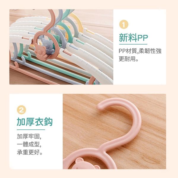 【嬰兒至成人皆可用】可伸縮小熊衣架|七檔長度調節 防滑設計 可疊加懸掛|衣櫃衣物/衣服收納掛架|全家/成年人/大人/兒童/小朋友/BB/寶寶/新生兒/小童適用 家庭用晾衫架 童裝衣架 褲架(10個;顏