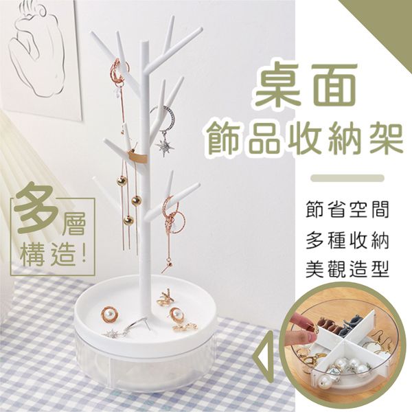 歐式樹枝飾品收納架+盒|上下層構造 可360°旋轉托盤 節省空間 超慳位首飾盒|北歐風女生梳妝台展示架|耳環耳釘/項鍊頸鏈/手鍊/戒指/手錶/髮圈髮飾頭飾髮繩/髮夾/鑰匙/化妝品/文具/桌面小物雜物架