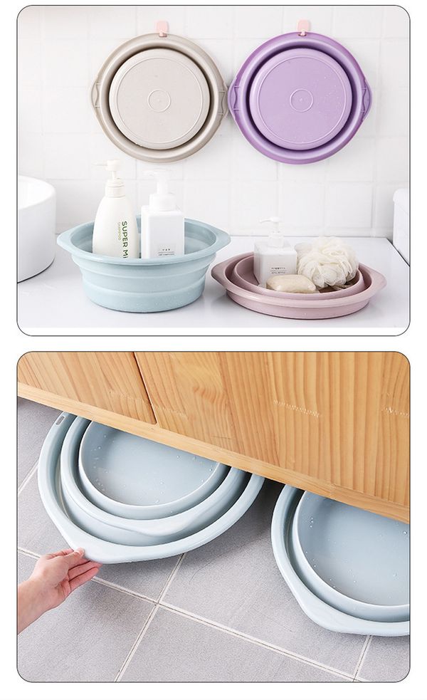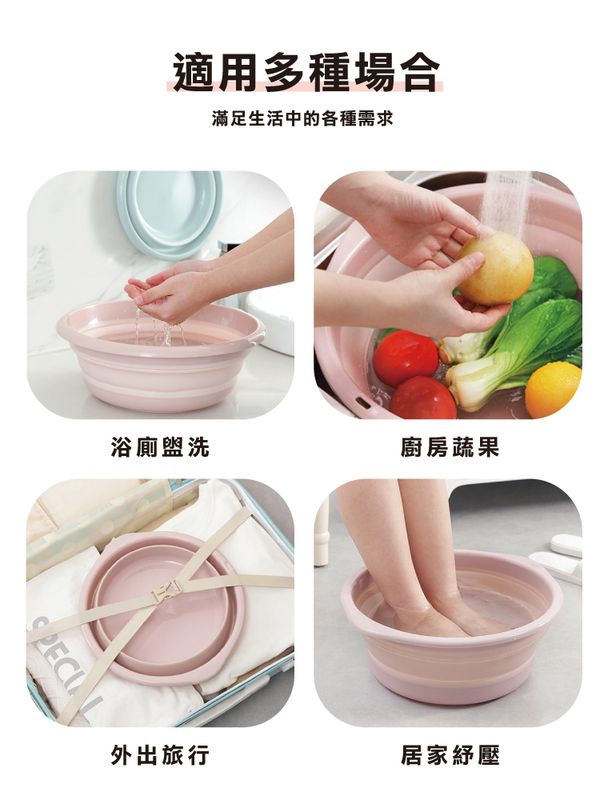【慳60%位!】多功能折疊式膠盆|洗菜洗衣洗腳洗臉用 可懸掛 附握把 北歐風家用/宿舍迷你塑膠小盆|旅行/野餐/露營/車載便攜容器 洗衣籃 盆 泡腳桶 水盆(淺藍色;小號)