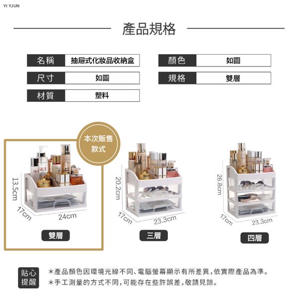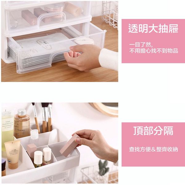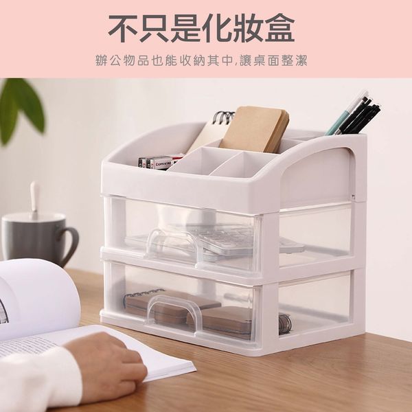 【雙層!】防塵化妝品/文具收納盒|無印風抽屜式多功能家用桌面化妝品收納盒 透明桌面塑膠整理架 簡約分格化妝刷具/化妝工具/美妝蛋/化妝棉/眉筆/口紅唇膏/皮膚保養品/乳液眼霜/卸妝水/筆筒|日常檯面小