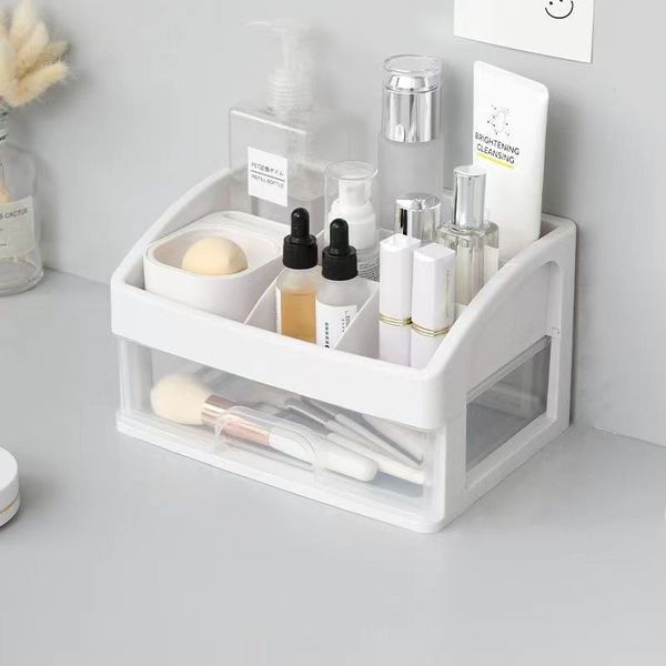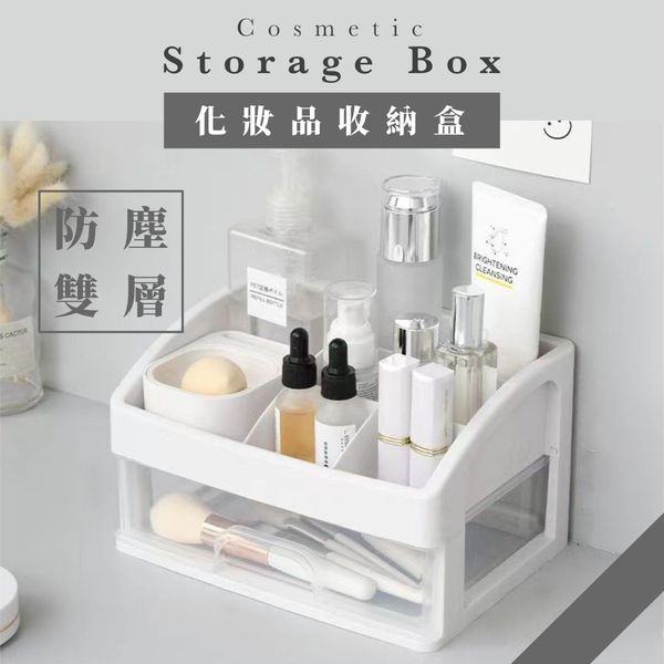 【雙層!】防塵化妝品/文具收納盒|無印風抽屜式多功能家用桌面化妝品收納盒 透明桌面塑膠整理架 簡約分格化妝刷具/化妝工具/美妝蛋/化妝棉/眉筆/口紅唇膏/皮膚保養品/乳液眼霜/卸妝水/筆筒|日常檯面小物/桌上及電線收納箱