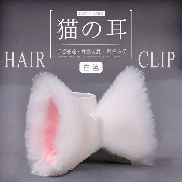日系手作貓耳髮卡|毛絨仿真獸耳貓咪狐狸髮箍 男女通用 可愛萬聖節/聖誕節/Cosplay/Lolita/情趣/變裝舞會聚會Party派對 |白貓頭飾髮夾發卡飾品(白色)