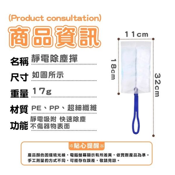 10塊 可換式靜電除塵棒 靜電除塵紙 除塵布 靜電除塵撢 除塵撢 雞毛撢子 除塵刷 撢子 除塵撢子 吸塵撢 除塵紙 除灰塵刷靜電除塵撣(藍白雙色/10塊套裝)