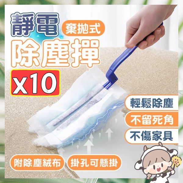 10塊 可換式靜電除塵掃 靜電除塵紙 除塵布 靜電除塵棒 除塵撢 雞毛掃 除塵刷 除灰塵刷 靜電除塵撣(藍白雙色/10塊套裝)