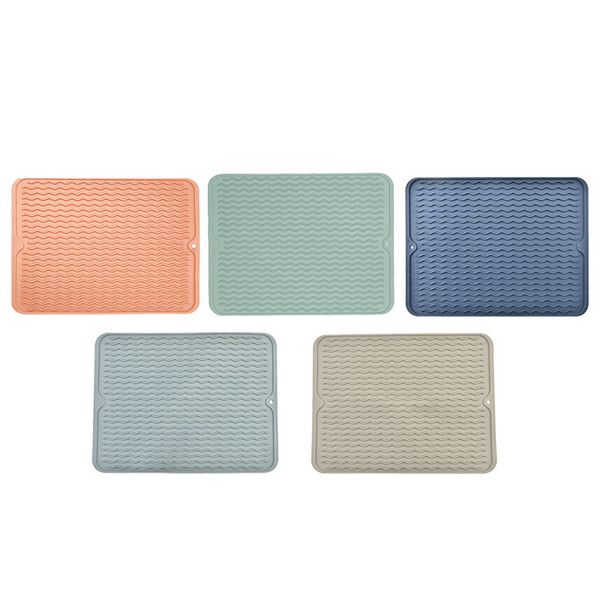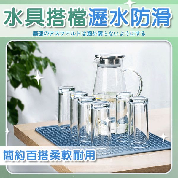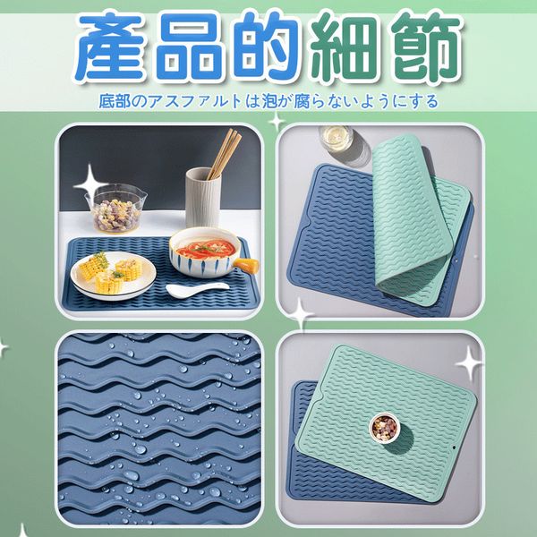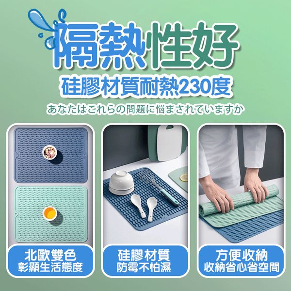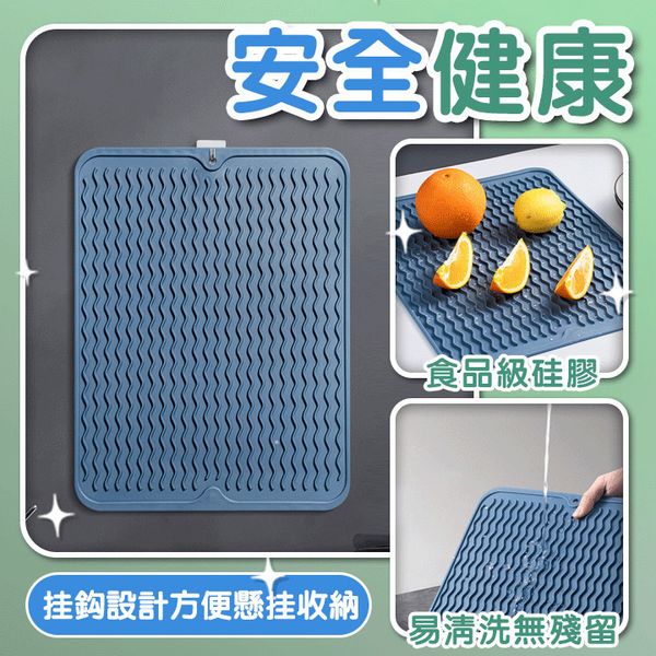 北歐風矽膠兩用墊 廚房瀝水墊 隔熱墊 碗盤瀝水墊 餐桌墊 矽膠隔熱墊 鍋墊 防滑桌墊 餐桌隔熱 硅膠鍋墊桌墊隔熱墊子 硅膠瀝水墊(藍色)