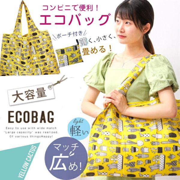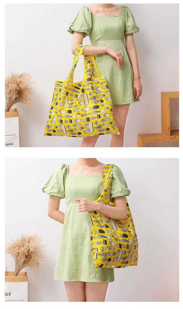 日式折疊超大環保袋|可摺成口袋尺寸 防水超輕牛津布購物袋 可水洗 可收納 便攜式大容量超市街市手挽購物袋 買餸買菜/野餐/露營/旅行/出門備用 多用途袋(黃色仙人掌)