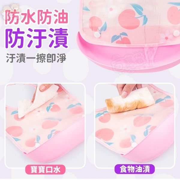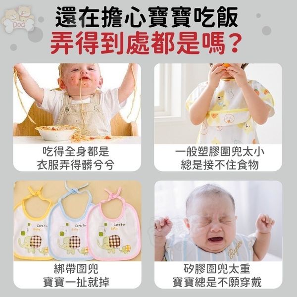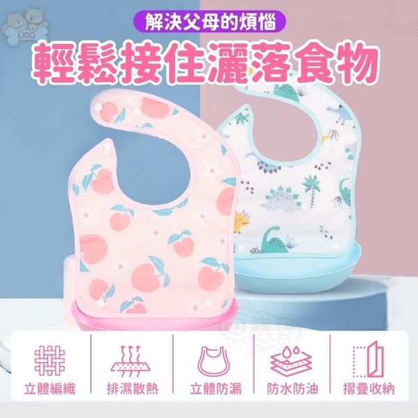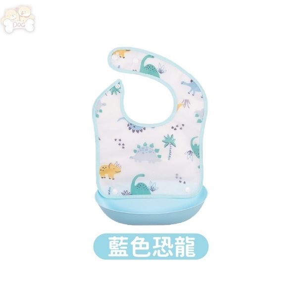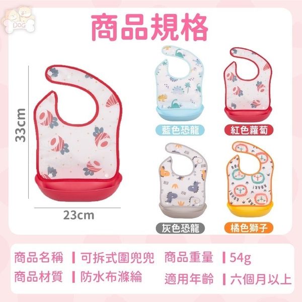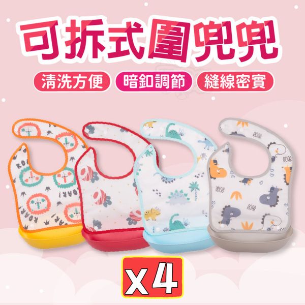 4款 可拆式圍兜 嬰兒圍兜 防水圍兜 食飯圍兜 防水防油可拆卸飯兜 兒童口水巾(黃色獅子+紅色蘿蔔+藍色恐龍+灰色恐龍/4款套裝)