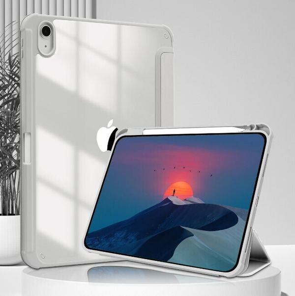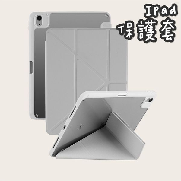 iPad保護套 保護殼 平板套 平板保護套 亞克力三折筆槽皮套 (霧霾灰/Y摺款/10.9寸適用)