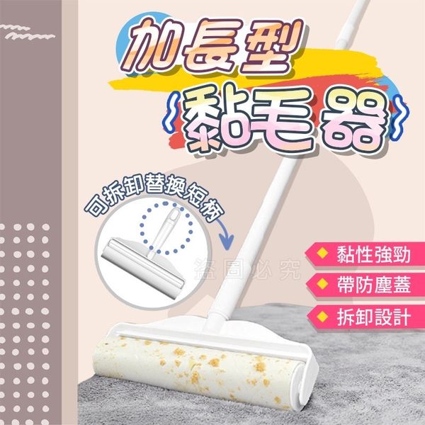 加長型黏毛器 加長清毛器黏 毛絮加長柄地板 粘毛器 除塵滾筒 加長柄黏塵紙 黏貓毛長柄滾刷 加長滾毛器 長柄滾刷家用滾輪粘(伸縮長短款/24cm/帶一捲紙)