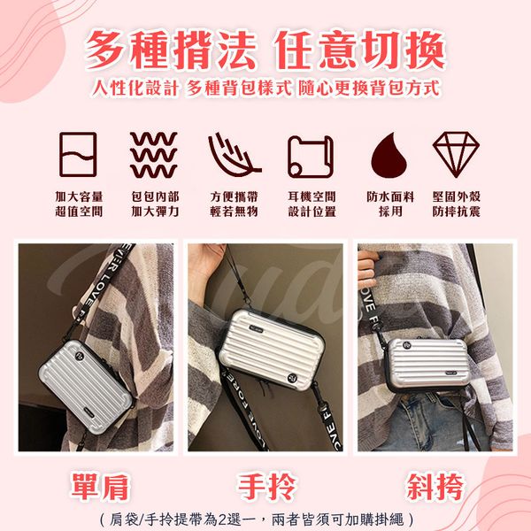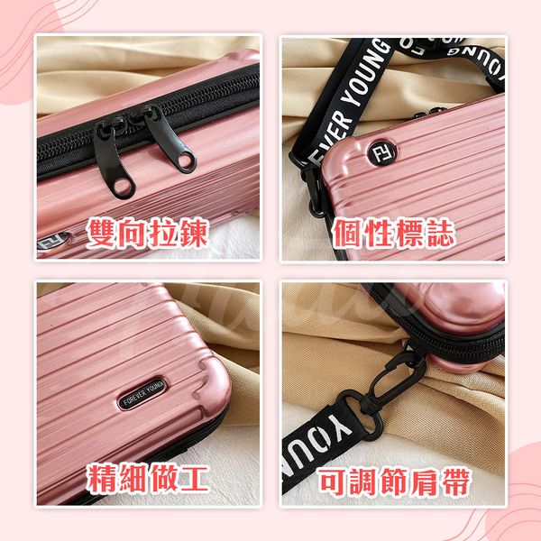 硬殼化妝包 小旅行箱 小航空箱 小包 迷你行李箱 迷你航空箱 化妝箱 硬殻包 隨身包手機包女 斜挎單肩包(玫瑰金)