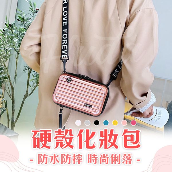硬殼化妝袋 化妝包 小手袋 小包 迷你行李箱 化妝箱 硬殻包 隨身包 手機袋 斜孭袋(玫瑰金)