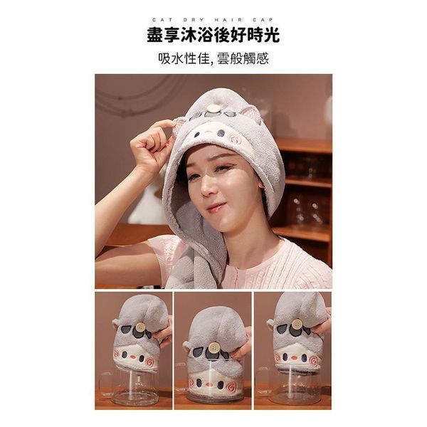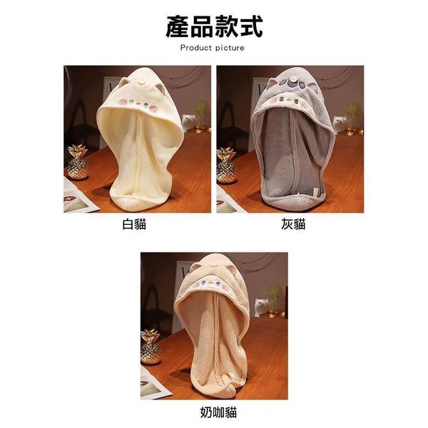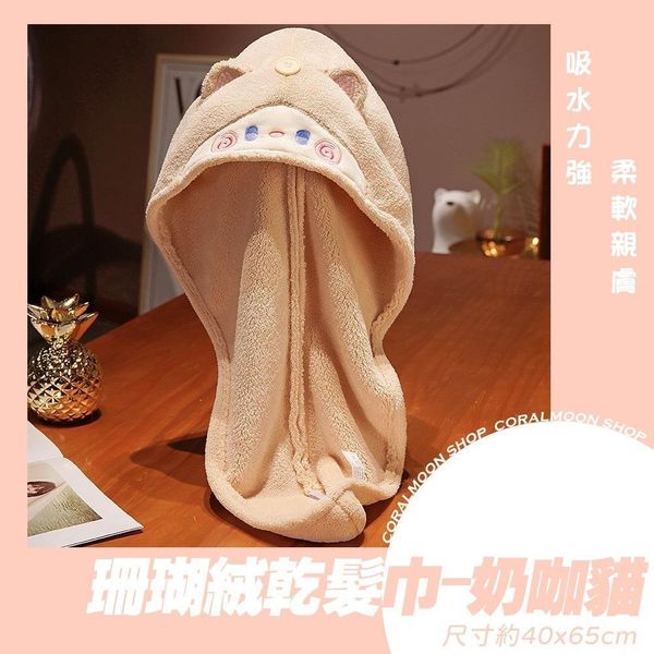 珊瑚絨可愛乾髮帽巾 加厚珊瑚絨包頭髮毛巾 擦頭髮毛巾 加厚吸水浴帽 乾髪帽毛巾 浴帽毛巾 乾髮巾(奶咖貓)