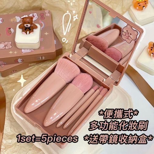 【帶鏡子化妝刷套裝】便攜迷你多功能散粉刷粉底刷眼影刷暈染刷 5件套