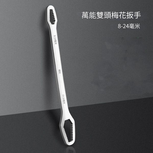 多功能梅花扳手多用萬能雙頭自緊眼鏡呆頭狹窄活動扳手工具套裝 雙頭梅花扳手8-24mm【銀色】