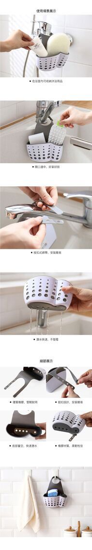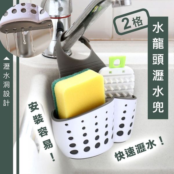 雙格水龍頭瀝水兜|簡易安裝 快速瀝水|廚房/廁所浴室洗手間衛生間用 掛袋式海綿收納掛兜|家用水槽清潔用品收納籃|廚房掛架 置物架 鋼絲球/刷子/抹布瀝乾架