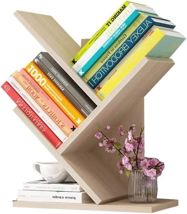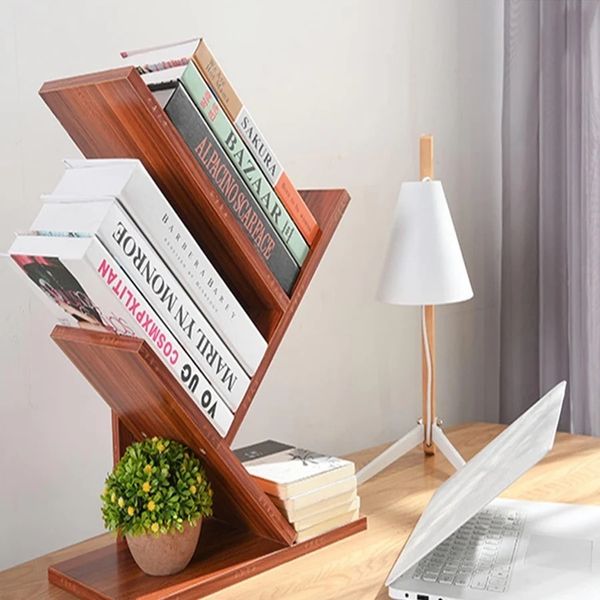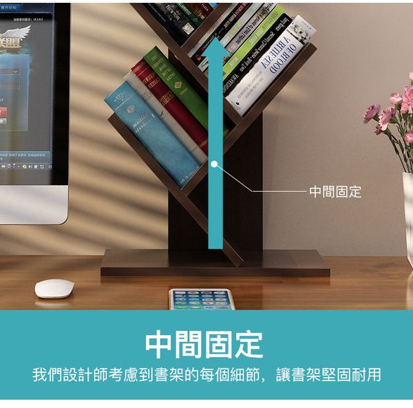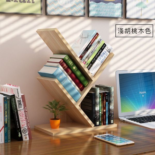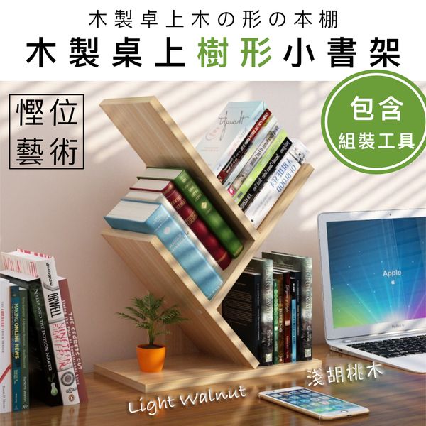 木製桌上型樹形小書架|節省空間 簡易安裝 穩固底座|北歐風質感DIY學生/兒童/小朋友/男生女生書桌辦公桌書櫃 書架 居家書本/書籍/圖書/教科書/課本收納層架(淺胡桃色;附組裝工具)