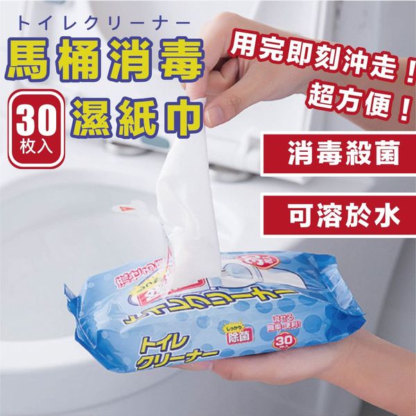 水溶性抗菌馬桶濕紙巾|可拋馬桶沖走 便攜消毒除菌衛生拭巾|家庭裝酒精防疫濕紙巾|出門旅行用 公廁廁板/廁所/洗手間/浴缸/磁磚/水龍頭清潔去漬濕巾 抹布 擦布(1包30張)